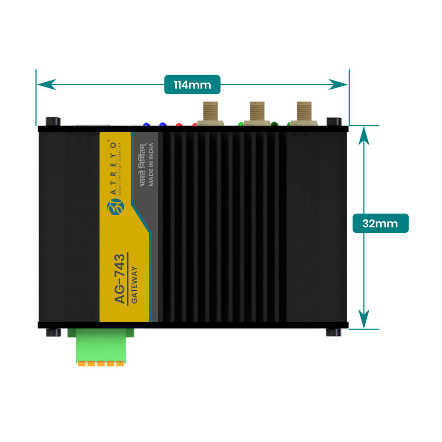 The Gateway is made on one PCB, which is fitted to the aluminum housing. The housing is made of a thick, strong aluminum profile with two end plates also made from aluminum. The surface of the housing is finished by anodizing.