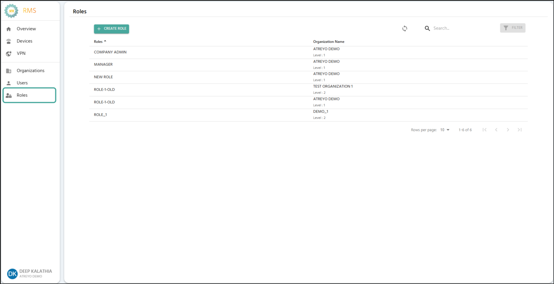 | Rows per page | Adjust the number of roles shown on the screen. |