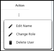 Next to each user entry, there is an Action button (three vertical dots) that opens a menu for specific user management tasks: