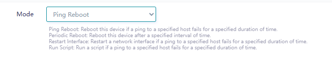 - Periodic Reboot: reboot at a set period of time, such as every 24h.