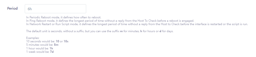 - Periodic Reboot : the interval of time at which to perform the reboot, such as every 24h